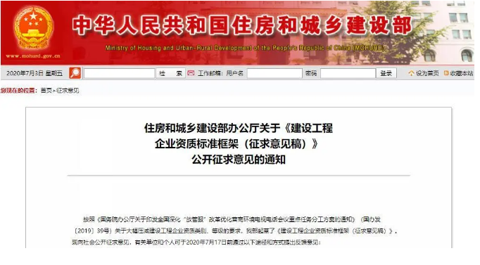 7月2日,住建部發(fā)布《住房和城鄉(xiāng)建設(shè)部辦公廳關(guān)于<建設(shè)工程企業(yè)資質(zhì)標(biāo)準(zhǔn)框架(征求意見稿)>公開征求意見的通知》,在通知中明確:
