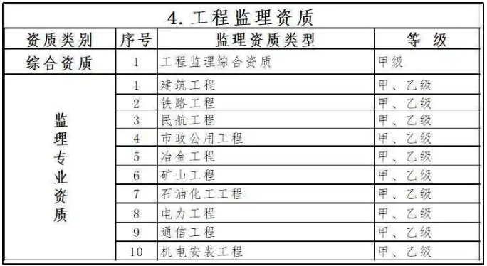 保留綜合資質(zhì)。取消水利水電工程、公路工程、港口與航道工程等專業(yè)資質(zhì),其資質(zhì)要求執(zhí)行有關(guān)行業(yè)主管部門規(guī)定。取消農(nóng)林工程監(jiān)理資質(zhì),建設(shè)單位委托農(nóng)林工程監(jiān)理業(yè)務(wù)時,不再作資質(zhì)要求。上述4個監(jiān)理專業(yè)資質(zhì)取消后,相關(guān)企業(yè)可以換發(fā)相近專業(yè)同等級監(jiān)理專業(yè)資質(zhì)。監(jiān)理專業(yè)資質(zhì)等級壓減為甲、乙兩級,原丙級資質(zhì)并入相應(yīng)專業(yè)的乙級資質(zhì)。取消事務(wù)所資質(zhì)。